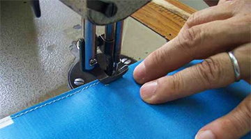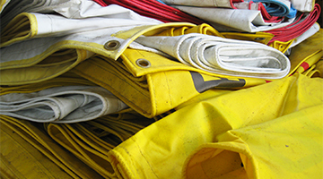 横断幕をトート制作工場に運び、トートとして生まれ変わらせます