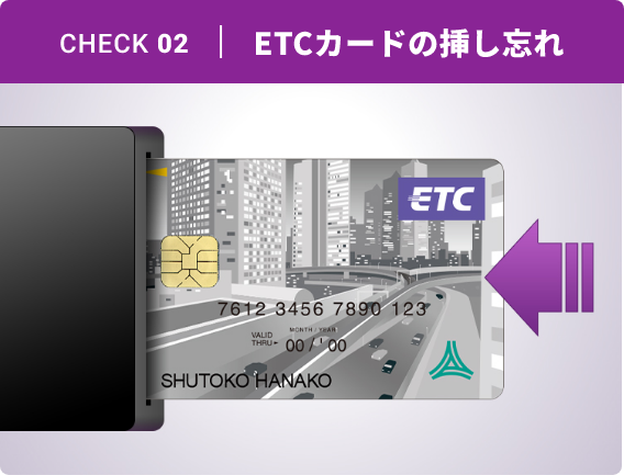 有効期限内のETCカードが正しく挿入されていないと、ETC専用入口はご利用いただけません。ご利用前にご確認ください。