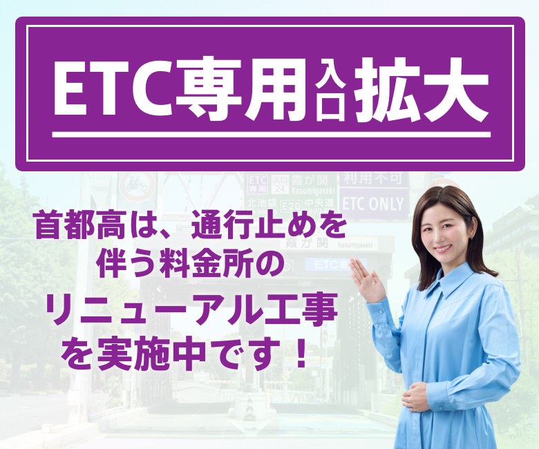 現在通行止めを伴う料金所のETC専用化工事を実施しており、