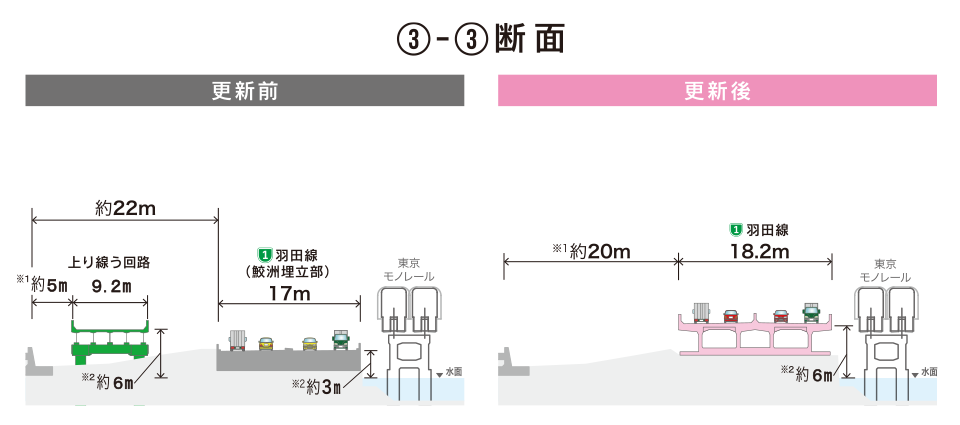 - 並行するモノレールからの離隔を確保