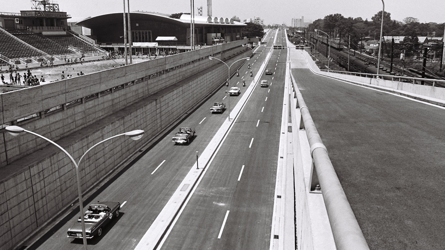 1964年10月の東京オリンピックまでには約33kmの首都高が開通。羽田空港から東京都心部へのアクセス向上など、大きな社会的要請に応えました。