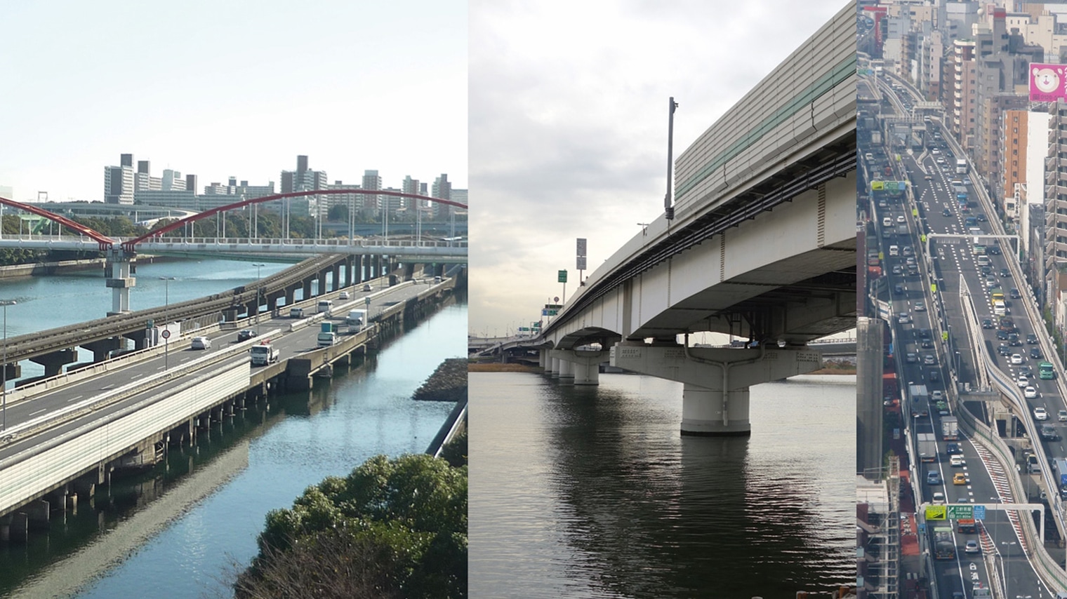 首都高の過酷な使用状況と構造物の高齢化を背景に道路構造物を長期にわたり健全に保ち、ご利用のお客様に安全・安心な道路を提供し続けるために、橋梁の架け替えや床板の取り替えなどの「大規模更新」と、構造物全体を補修する「大規模修繕」の検討が、技術的・経済的見地から進められました。