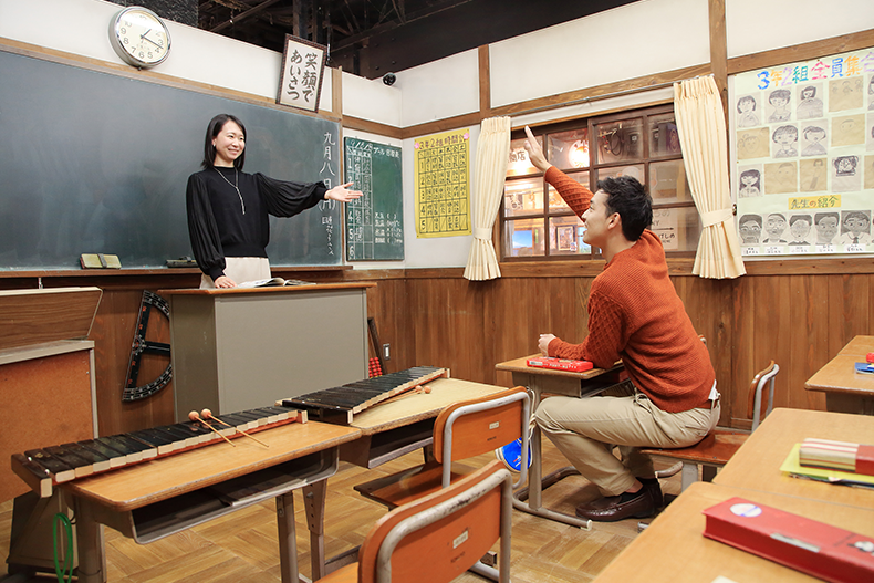レトロなスナックや懐かしの教室、レコード店、玩具店、畳にちゃぶ台の居間など、古き良き昭和の町をリアルに再現した施設。ワンピースやセーラー服など衣装もレンタル可能で、いずれも自由に写真撮影ができる。