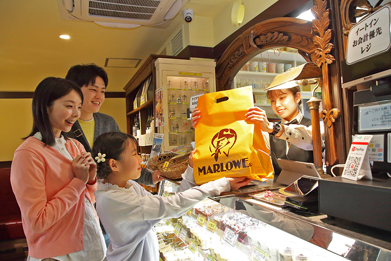 ビーカー入り手作り焼きプリンで知られる「マーロウ」の本店。1984年にレストランとして開業したのが始まりで、地産地消のイタリアンが人気。プリンも定番のカスタードのほか、北海道フレッシュクリームや黒みつ、抹茶など多彩に揃う。