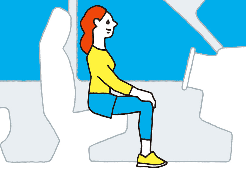 シートに座った状態で、両手の指を組んで腕を前に大きく伸ばす。